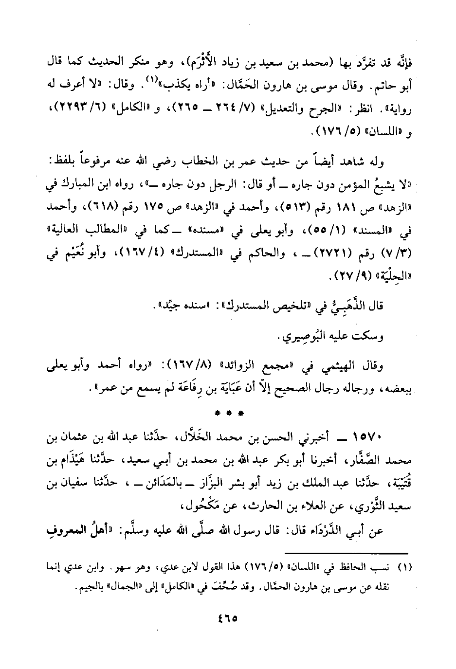 (¬١) نسب الحافظ في "اللسان" (٥/ ١٧٦) هذا القول لابن عدي، وهو سهو. وابن عدي إنما نقله عن موسى بن هارون الحمَّال. وقد صُحِّفَ في "الكامل" إلى "الجمال" بالجيم.