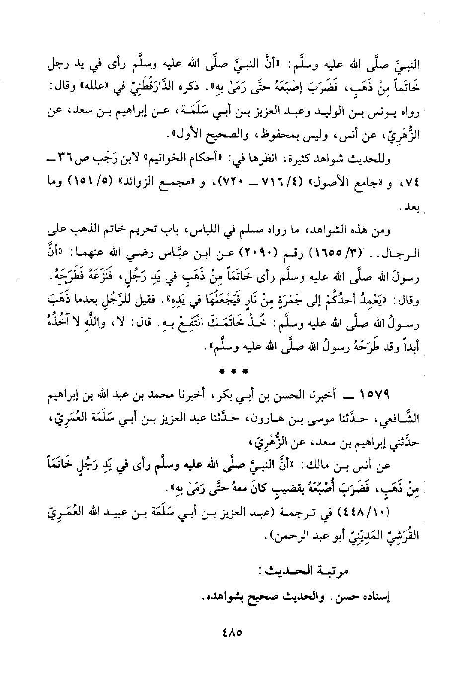 ١٥٧٩ - أخبرنا الحسن بن أبي بكر، أخبرنا محمد بن عبد اللَّه بن إبراهيم الشَّافعي، حدَّثنا موسى بن هارون، حدَّثنا عبد العزيز بن أبي سَلَمَة العُمَرِيّ، حدَّثني إبراهيم بن سعد، عن الزُّهْرِيّ،