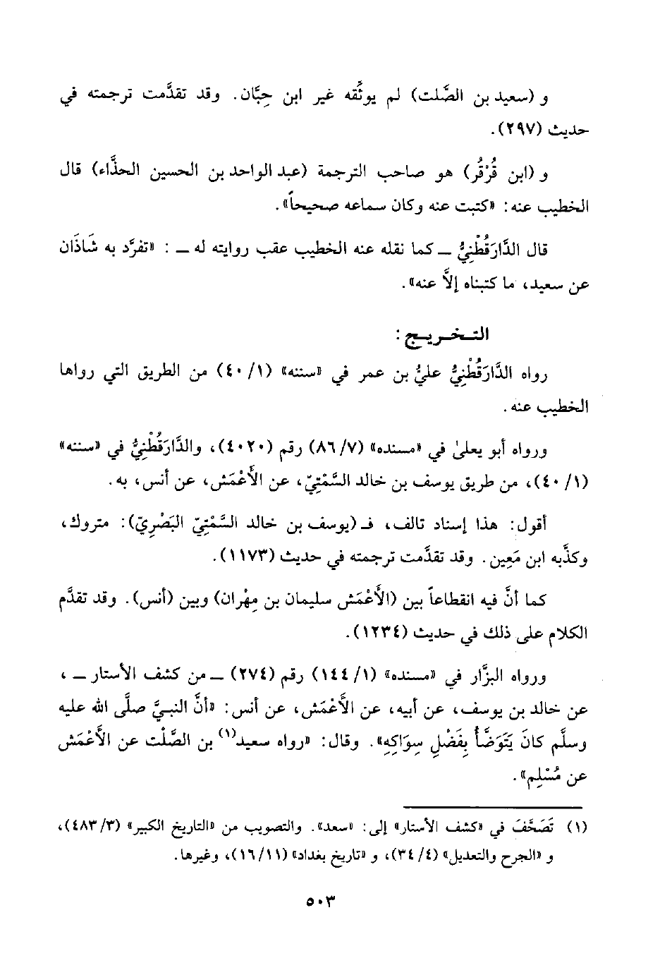 (¬١) تَصَحَّفَ في "كشف الأستار" إلى: "سعد". والتصويب من "التاريخ الكبير" (٣/ ٤٨٣)، و"الجرح والتعديل" (٤/ ٣٤)، و"تاريخ بغداد" (١١/ ١٦)، وغيرها.