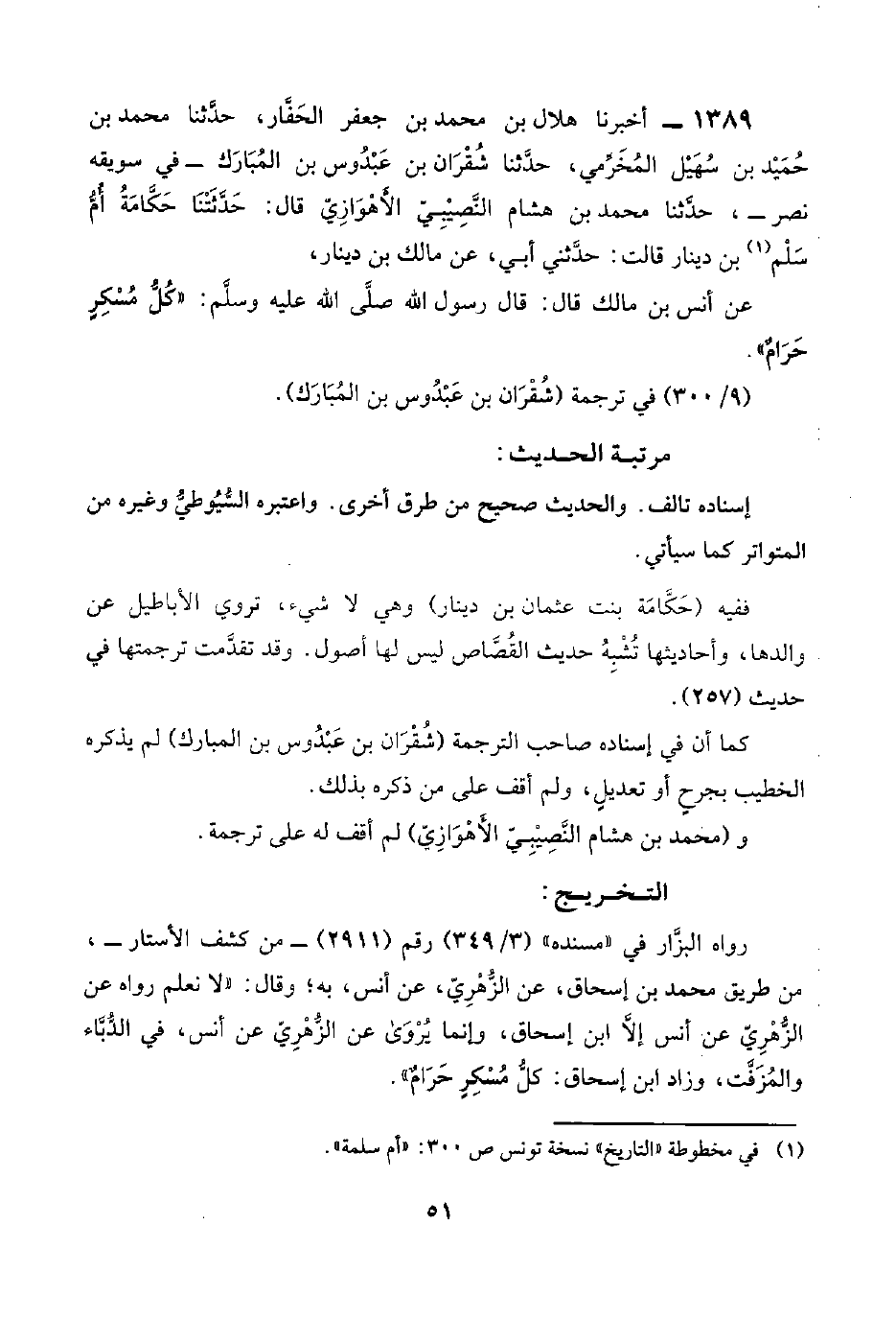 رواه البزَّار في "مسنده" (٣/ ٣٤٩) رقم (٢٩١١) -من كشف الأستار-، من طريق محمد بن إسحاق، عن الزُّهْرِيّ، عن أنس، به؛ وقال: "لا نعلم رواه عن الزُّهْرِيّ عن أنس إلَّا ابن إسحاق، وإنما يُرْوَى عن الزُّهْرِيّ عن أنس، في الدُّبَّاء والمُزَفَّت، وزاد ابن إسحاق: كلُّ مُسْكِرٍ حَرَامٌ".