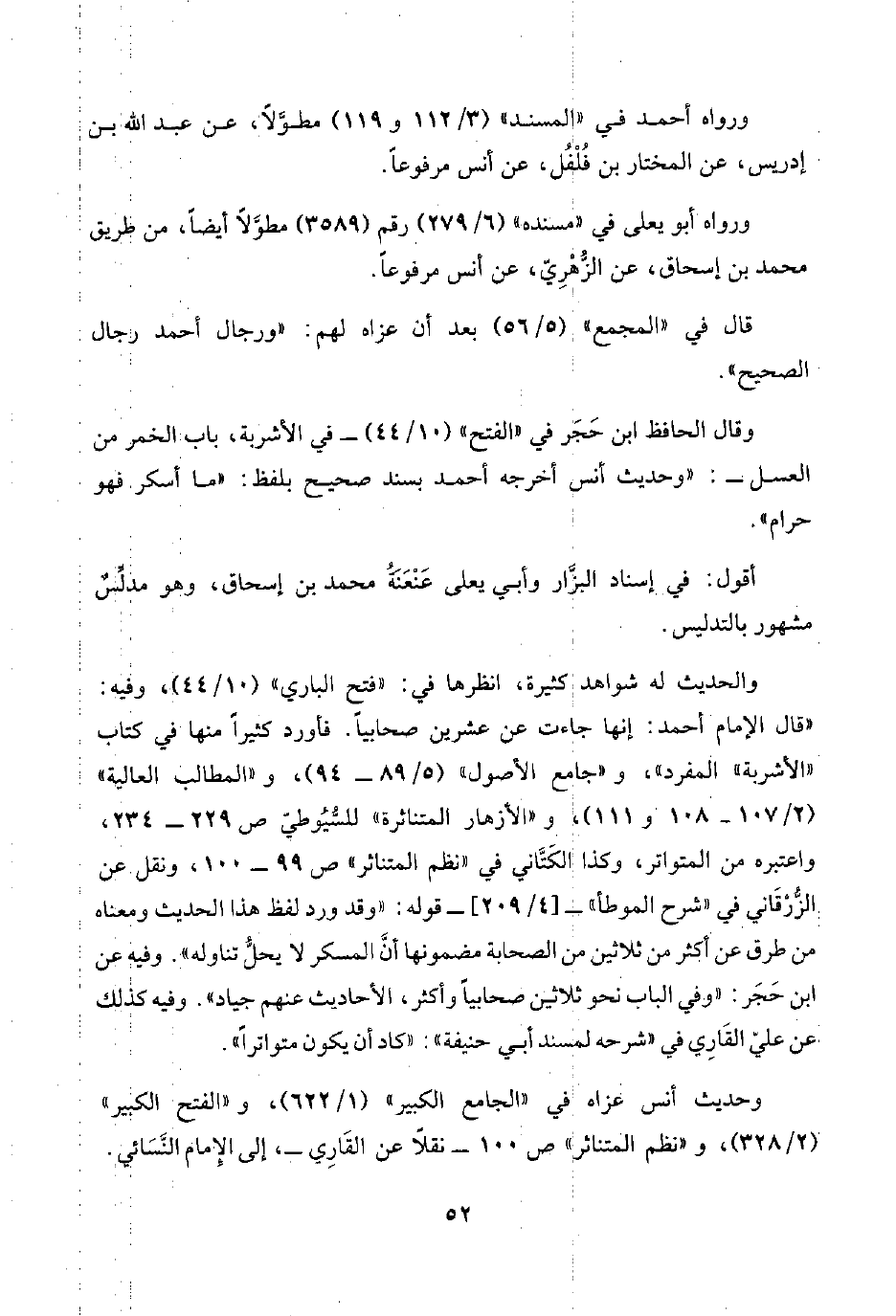 وقال الحافظ ابن حَجَر في "الفتح" (١٠/ ٤٤) -في الأشربة، باب الخمر من العسل-: "وحديث أنس أخرجه أحمد بسند صحيح بلفظ: "ما أسكر، فهو حرام".