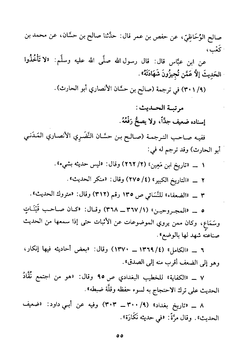 (٩/ ٣٠١) في ترجمة (صالح بن حسَّان الأنصاري أبو الحارث).