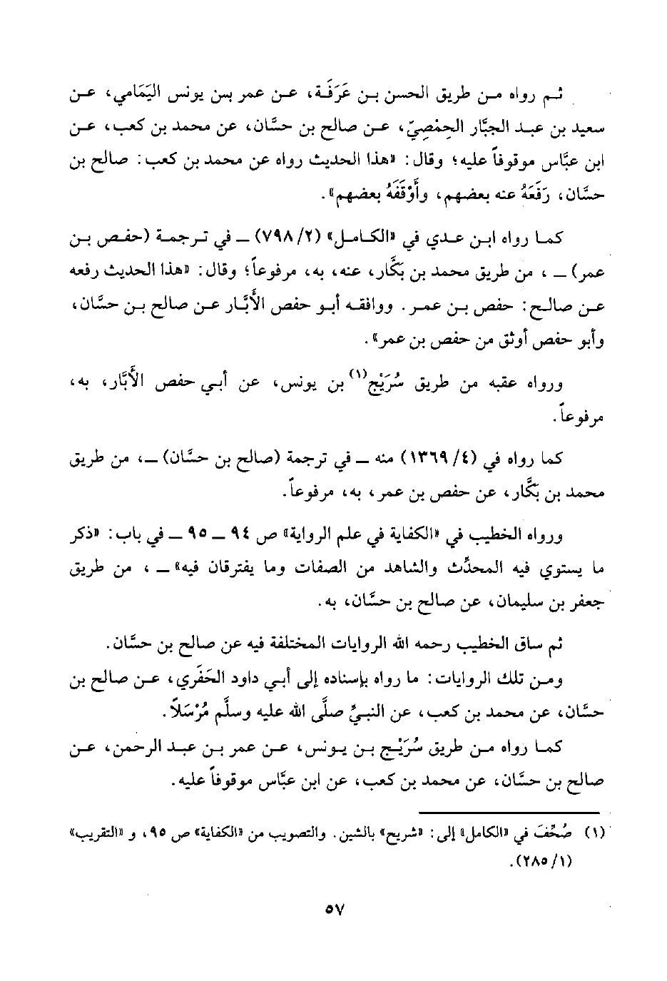 (¬١) صُحِّفَ في "الكامل" إلى: "شريح" بالشين. والتصويب من "الكفاية" ص ٩٥، و"التقريب" (١/ ٢٨٥) ـ
