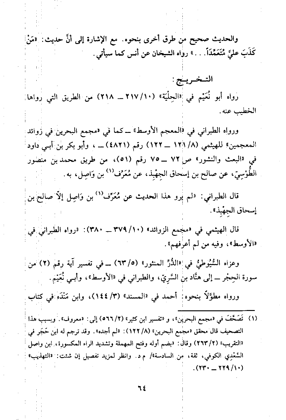 قال الطبراني: "لم يرو هذا الحديث عن مُعَرِّف (¬١) بن وَاصِل إلّا صالح بن إسحاق الجِهْبِذ".