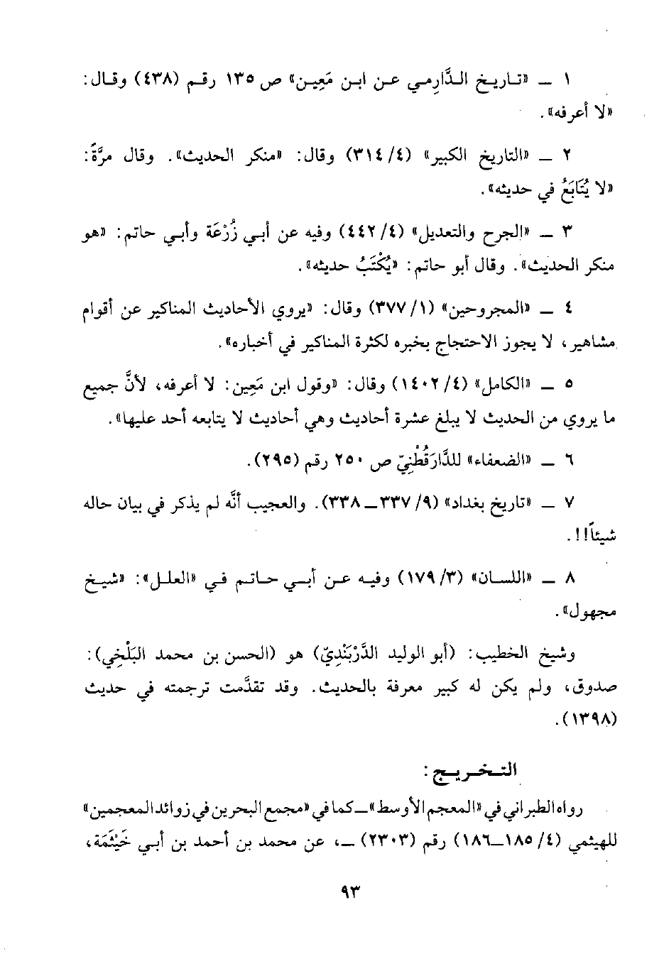 ٦ - "الضعفاء" للدَّارَقُطْنِيّ ص ٢٥٠ رقم (٢٩٥).