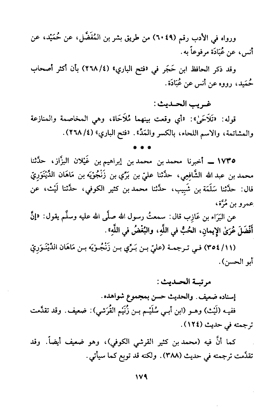 عن البَرَاء بن عَازِب قال: سمعتُ رسول اللَّه صلَّى اللَّه عليه وسلَّم يقول: "إنَّ أَفْضَلَ عُرَى الإِيمانِ، الحُبُّ في اللَّهِ، والبُغْضُ في اللَّهِ".