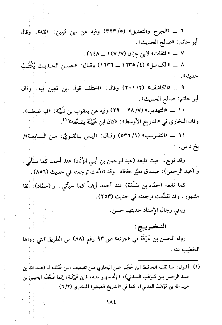 ٦ - "الجرح والتعديل" (٥/ ٣٢٣) وفيه عن ابن مَعِين: "ثقة". وقال أبو حاتم: "صالح الحديث".
