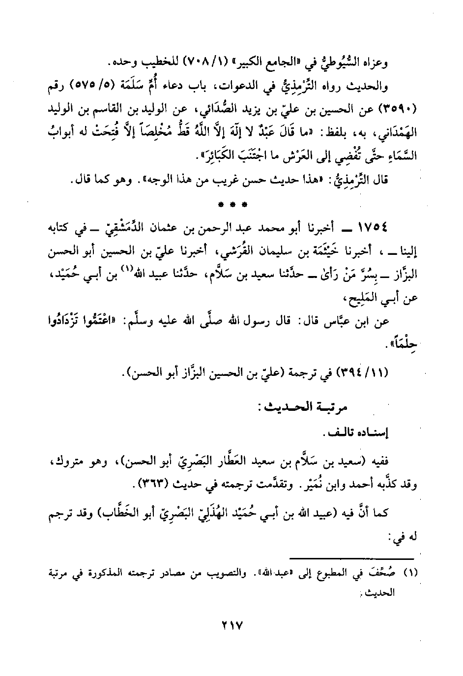 (¬١) صُحِّفَ في المطبوع إلى "عبد اللَّه". والتصويب من مصادر ترجمته المذكورة في مرتبة الحديث.