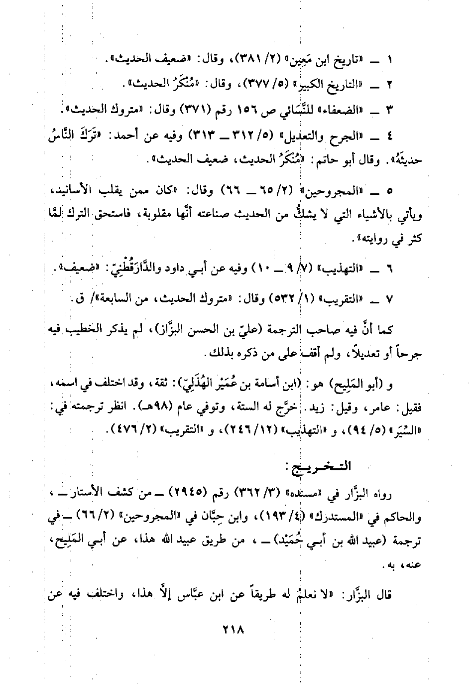 ١ - "تاريخ ابن مَعِين" (٢/ ٣٨١)، وقال: "ضعيف الحديث".