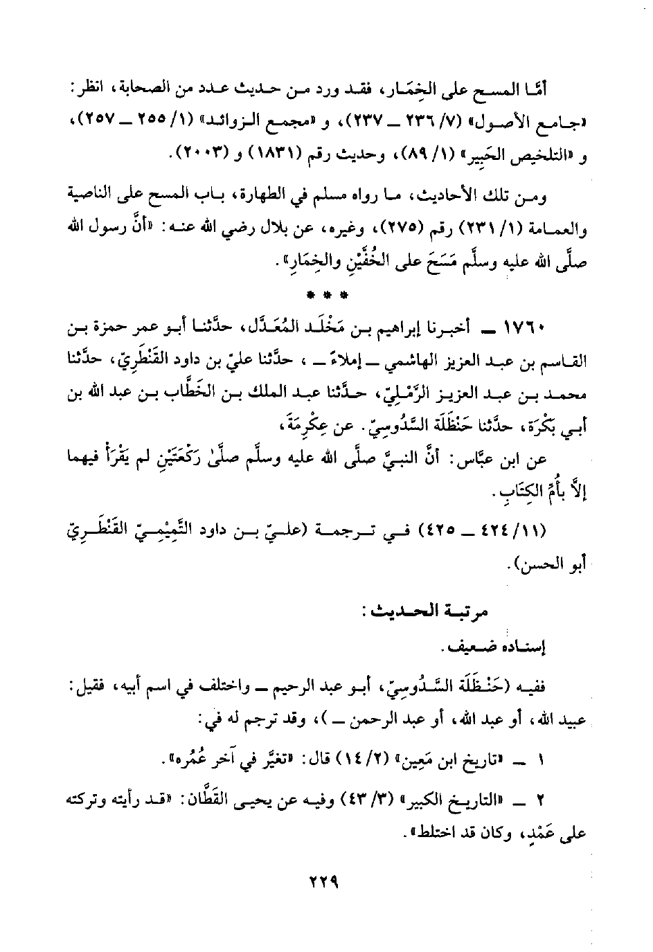 ١٧٦٠ - أخبرنا إبراهيم بن مَخْلَد المُعَدَّل، حدَّثنا أبو عمر حمزة بن القاسم بن عبد العزيز الهاشمي -إملاءً-، حدَّثنا عليّ بن داود القَنْطَرِيّ، حدَّثنا محمد بن عبد العزيز الرَّمْلِيّ، حدَّثنا عبد الملك بن الخَطَّاب بن عبد اللَّه بن أبي بَكْرَة، حدَّثنا حَنْظَلَة السَّدُوسِيّ. عن عِكْرِمَةَ،