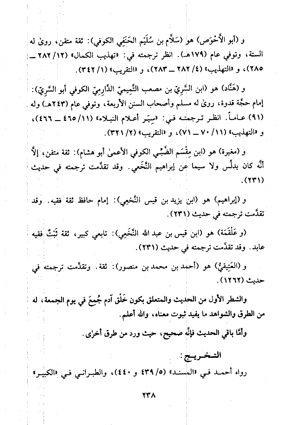 والشطر الأول من الحديث والمتعلق بكون خَلْق آدم جُمِعَ في يوم الجمعة، له من الطرق والشواهد ما يفيد ثبوت معناه، واللَّه أعلم.