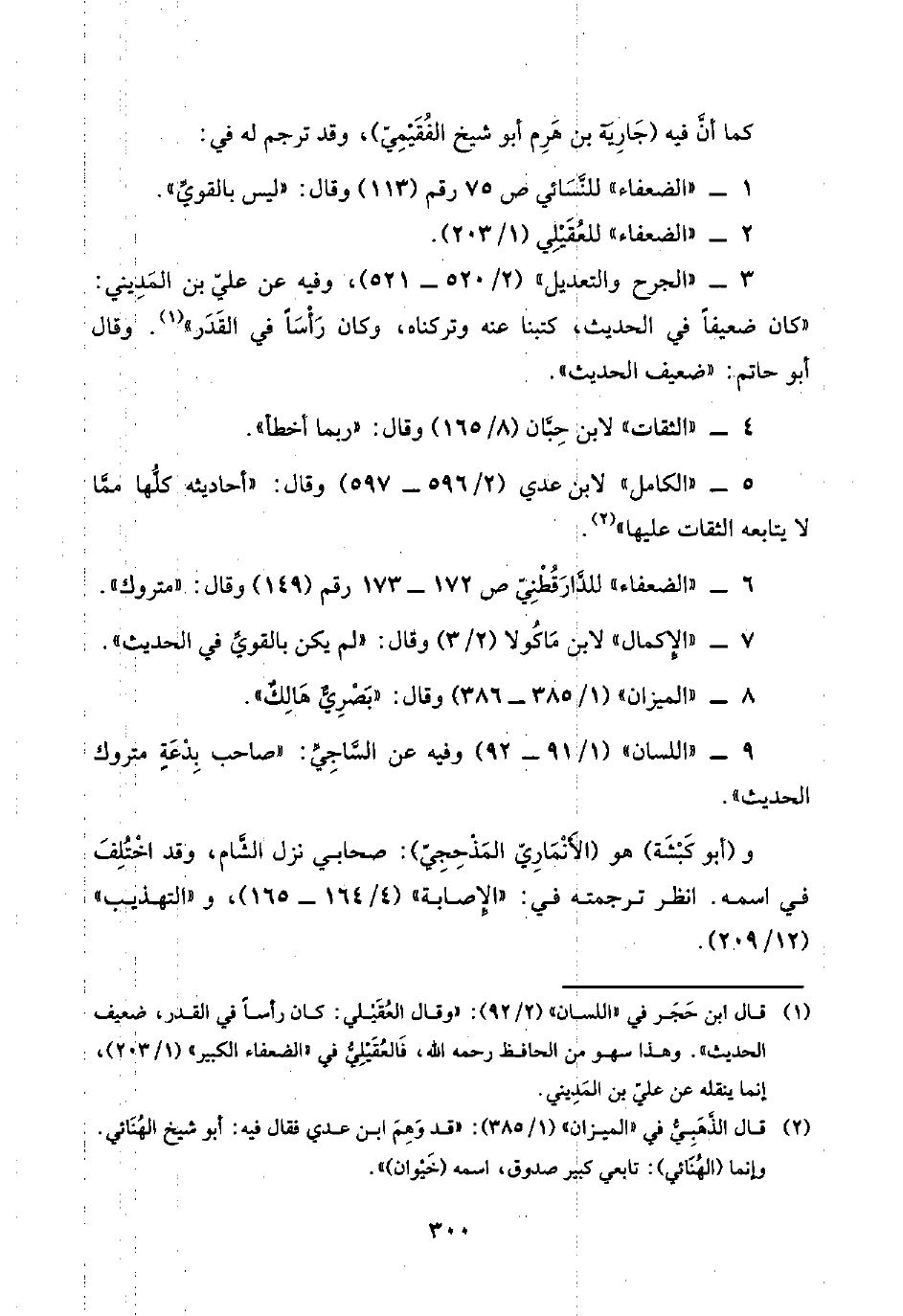 (¬١) قال ابن حَجَر في "اللسان" (٢/ ٩٢): "وقال العُقَيْلِي: كان رأسًا في القدر، ضعيف الحديث". وهذا هو من الحافظ رحمه اللَّه، فَالعُقَيْلِيُّ في "الضعفاء الكبير" (١/ ٢٠٣)، إنما ينقله عن عليّ بن المَدِيني.