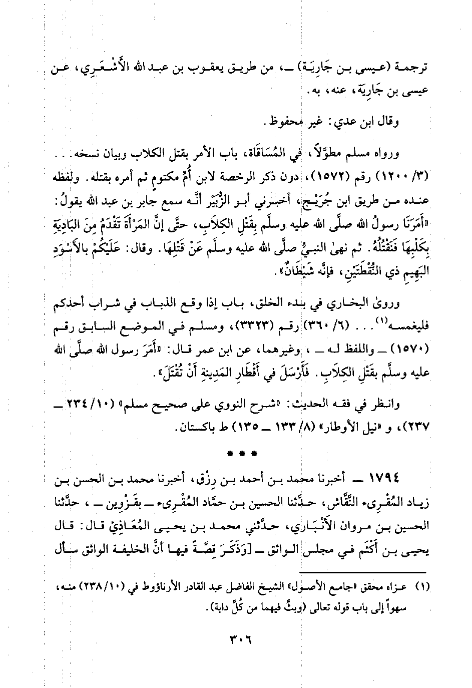 (¬١) عزاه محقق "جامع الأصول" الشيخ الفاضل عبد القادر الأرناؤوط في (١٠/ ٢٣٨) منه، سهوًا إلى باب قوله تعالى (وبثَّ فيهما من كُلِّ دابة).