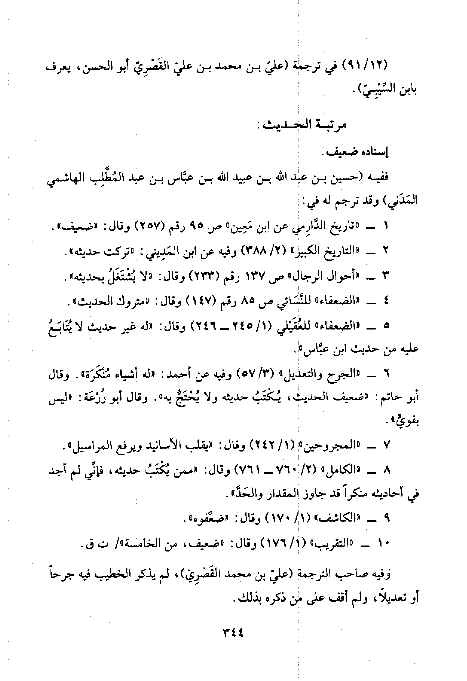 ١٠ - "التقريب" (١/ ١٧٦) وقال: "ضعيف، من الخامسة"/ ت ق.