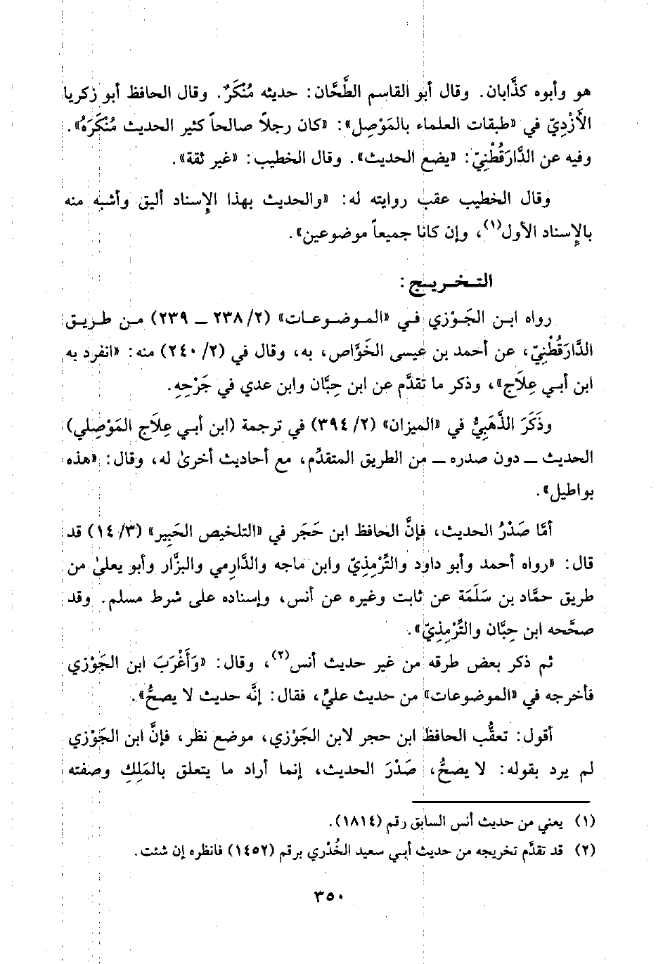 وذَكَرَ الذَّهَبِيُّ في "الميزان" (٢/ ٣٩٤) في ترجمة (ابن أبي عِلَاج المَوْصِلي) الحديث -دون صدره- من الطريق المتقدِّم، مع أحاديث أخرى له، وقال: "هذه بواطيل".