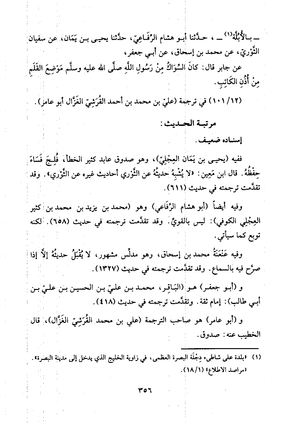 وفيه أيضًا (أبو هشام الرِّفَاعي) وهو (محمد بن يزيد بن محمد بن كثير العِجْلِي الكوفي): ليس بالقويِّ. وقد تقدَّمت ترجمته في حديث (٦٥٨). لكنه توبع كما سيأتي.