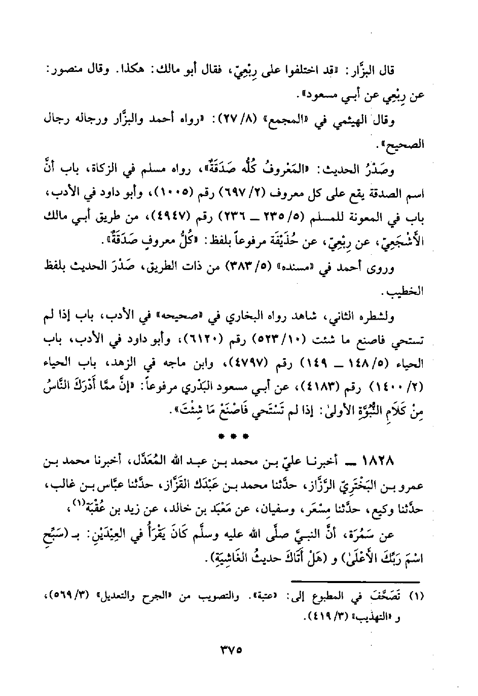 قال البزَّار: "قد اختلفوا على رِبْعِيّ، فقال أبو مالك: هكذا. وقال منصور: عن رِبْعِي عن أبي مسعود".