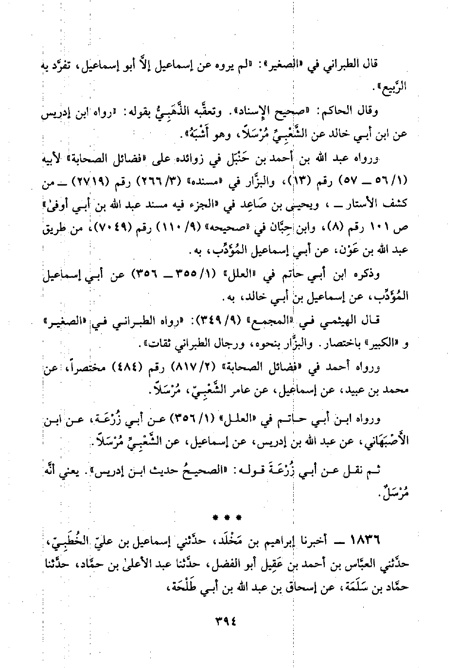 وقال الحاكم: "صحيح الإسناد". وتعقَّبه الذَّهَبِيُّ بقوله: "رواه ابن إدريس عن ابن أبي خالد عن الشَّعْبِيِّ مُرْسَلًا، وهو أَشْبَهُ".