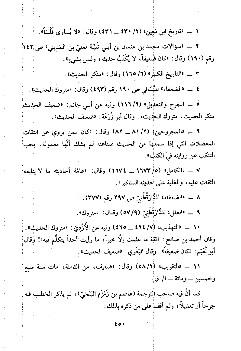 ١ - "تاريخ ابن مَعِين" (٢/ ٤٣٠ - ٤٣١) وقال: "لا يُساوي فَلْسًا".