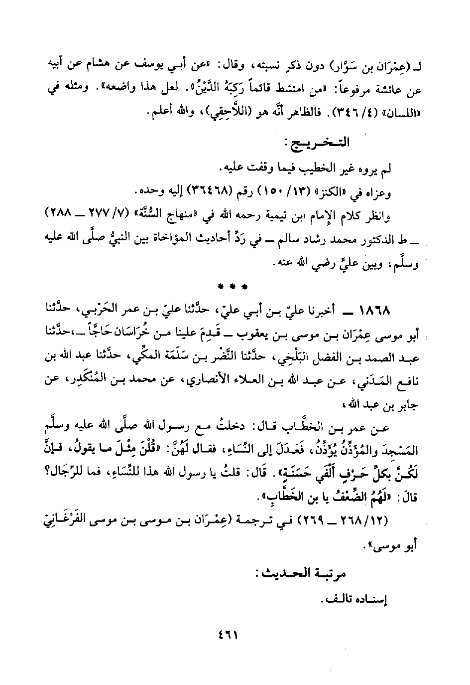 (١٢/ ٢٦٨ - ٢٦٩) في ترجمة (عِمْرَان بن موسى بن موسى الفَرْغَانِيّ أبو موسى).