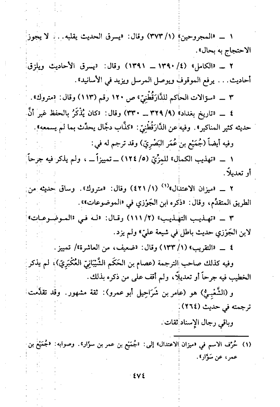 (¬١) حُرِّف الاسم في "ميزان الاعتدال" إلى: "جُمَيْع بن عمر بن سوَّار". وصوابه: "جُمَيْع بن عمر، عن سَوَّار".