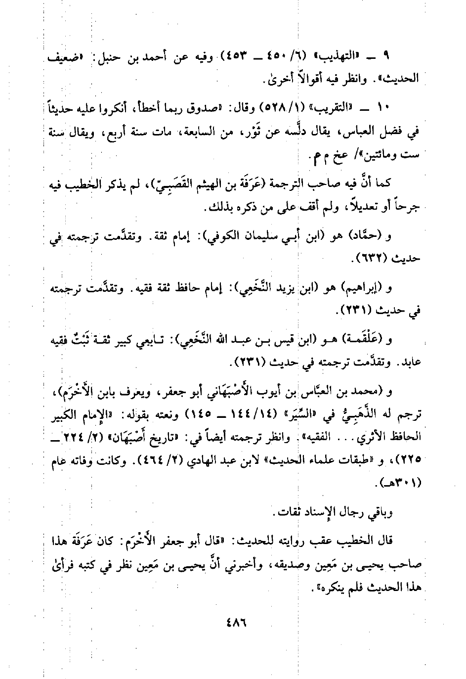 كما أنَّ فيه صاحب الترجمة (عَرَفَة بن الهيثم القَصَبِيّ)، لم يذكر الخطيب فيه جرحًا أو تعديلًا، ولم أقف على من ذكره بذلك.