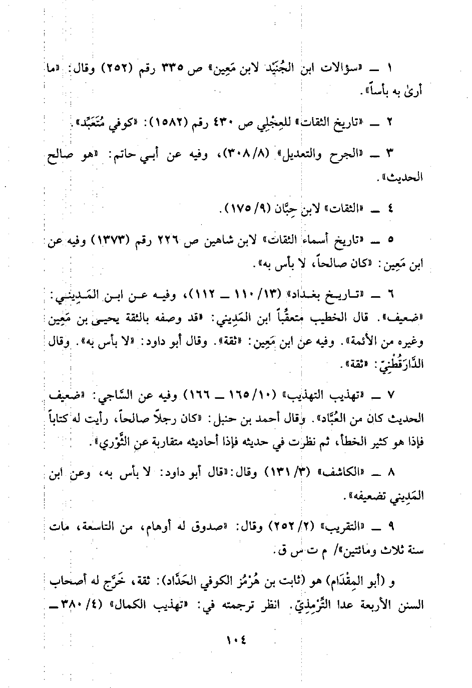 ٦ - "تاريخ بغداد" (١٣/ ١١٠ - ١١٢)، وفيه عن ابن المَدِيني: "ضعيف". قال الخطيب متقِّبًا ابن المَدِيني: "قد وصفه بالثقة يحيى بن مَعِين وغيره من الأئمة". وفيه عن ابن مَعِين: "ثقة". وقال أبو داود: "لا بأس به". وقال الدَّارَقُطْنِيّ: "ثقة".