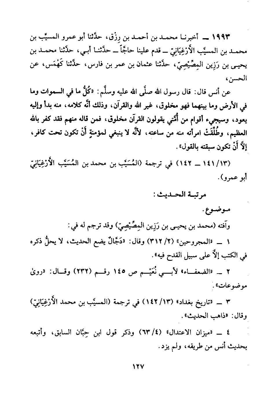 (١٣/ ١٤١ - ١٤٢) في ترجمة (المُسَيَّب بن محمد بن المُسَيَّب الأَرْغِيَانِيّ أبو عمرو).