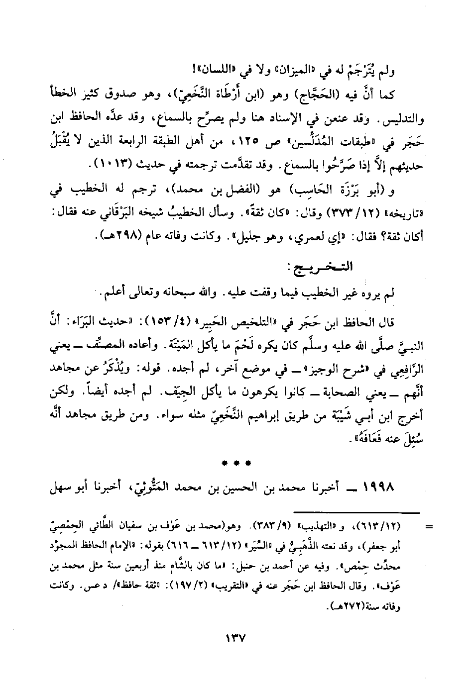 و (أبو بَرْزَة الحَاسِب) هو (الفضل بن محمد)، ترجم له الخطيب في "تاريخه" (١٢/ ٣٧٣) وقال: "كان ثقةً". وسأل الخطيبُ شيخه البَرْقَاني عنه فقال: أكان ثقة؟ فقال: "إي لعمري، وهو جليل". وكانت وفاته عام (٢٩٨ هـ).