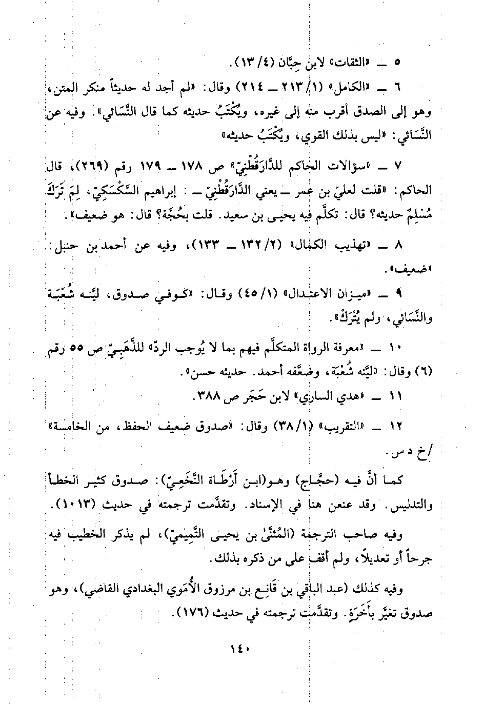 ٩ - "ميزان الاعتدال" (١/ ٤٥) وقال: "كوفي صدوق، ليَّنه شُعْبَة والنَّسَائي، ولم يُتْرَكْ".