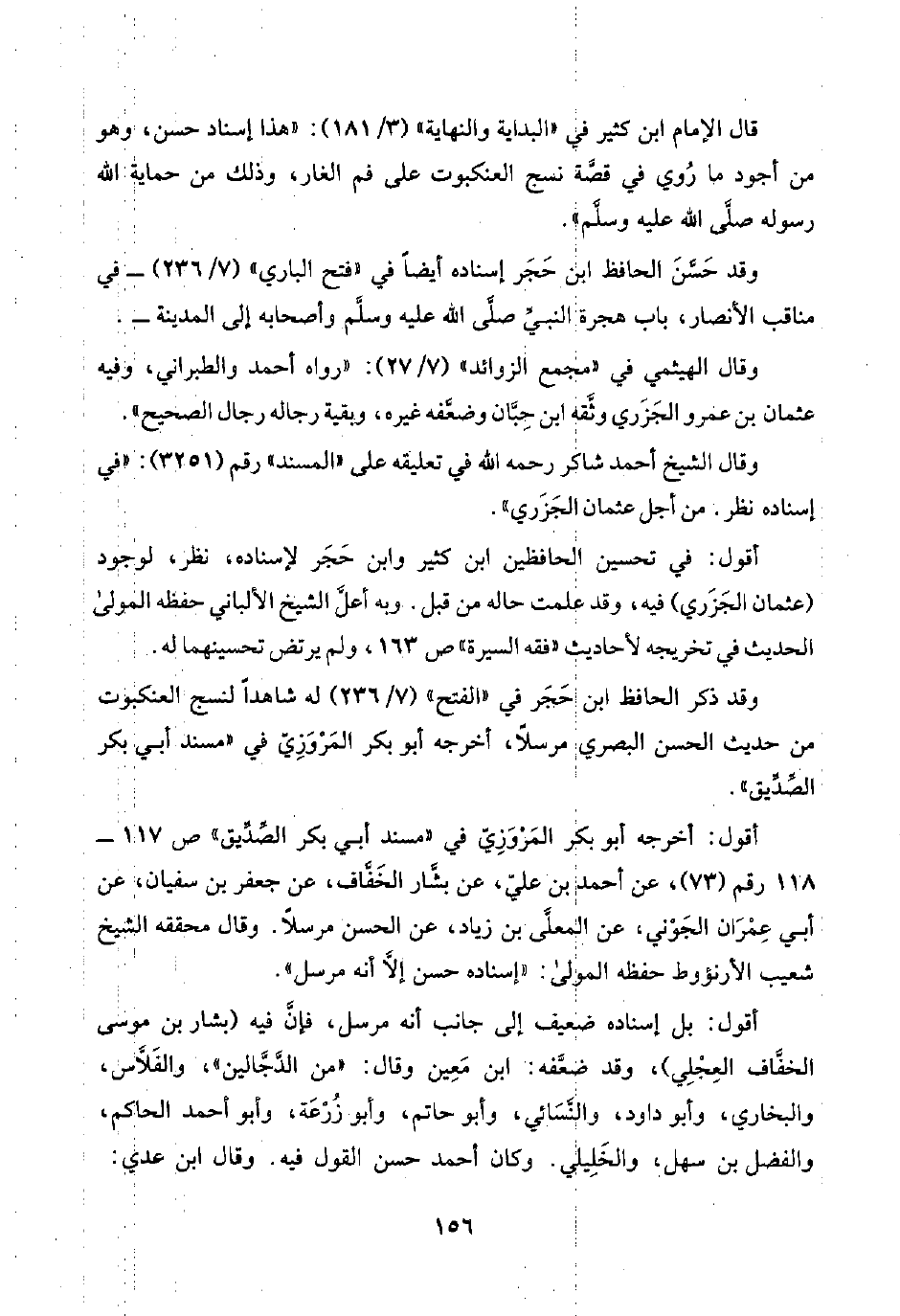 أقول: في تحسين الحافظين ابن كثير وابن حَجَر لإسناده، نظر، لوجود (عثمان الجَزَري) فيه، وقد علمت حاله من قبل. وبه أعلَّ الشيخ الألباني حفظه المولى الحديث في تخريجه لأحاديث "فقه السيرة" ص ١٦٣، ولم يرتض تحسينهما له.