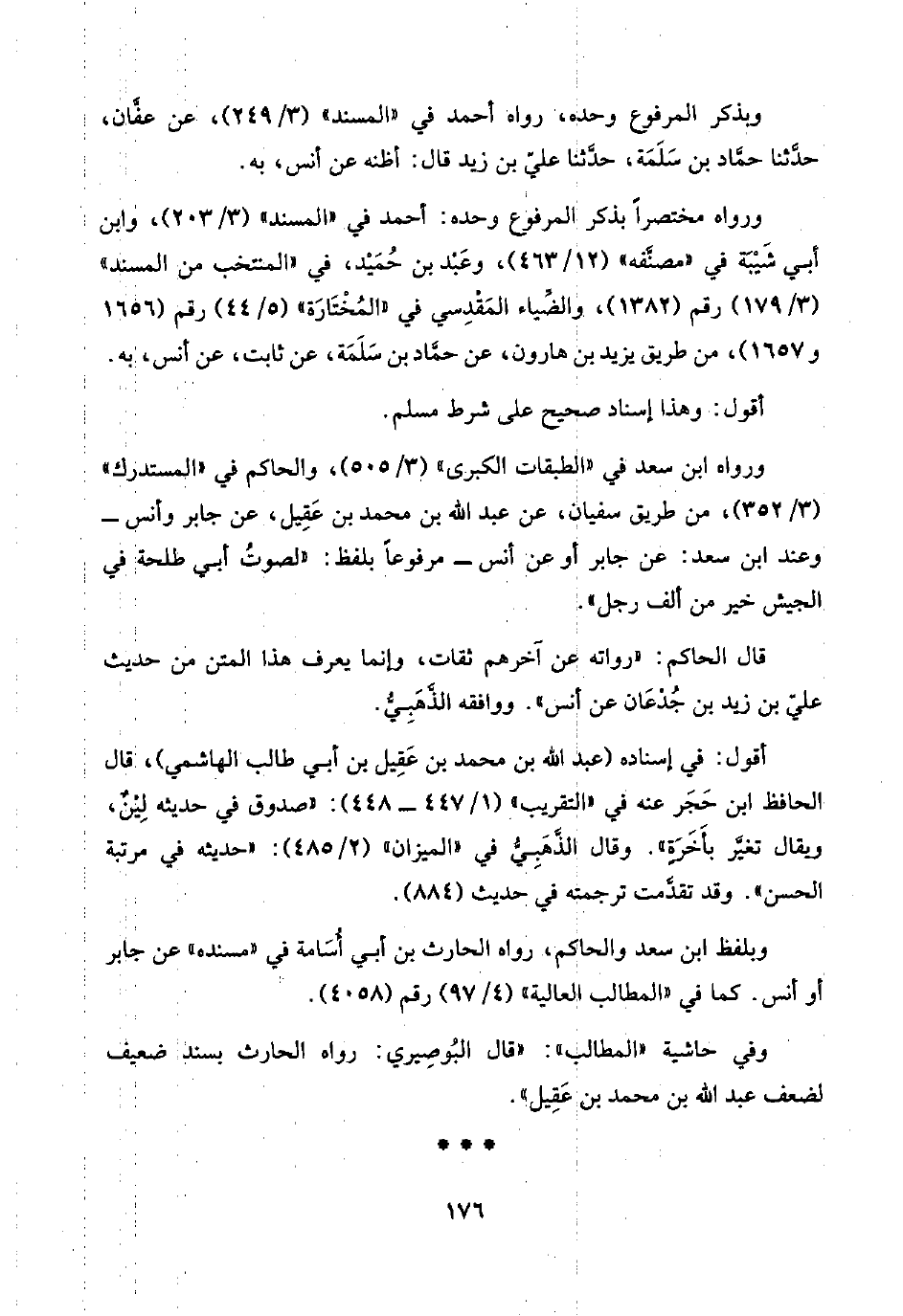 وفي حاشية "المطالب": "قال البُوصِيري: رواه الحارث بسند ضعيف لضعف عبد اللَّه بن محمد بن عَقِيل".