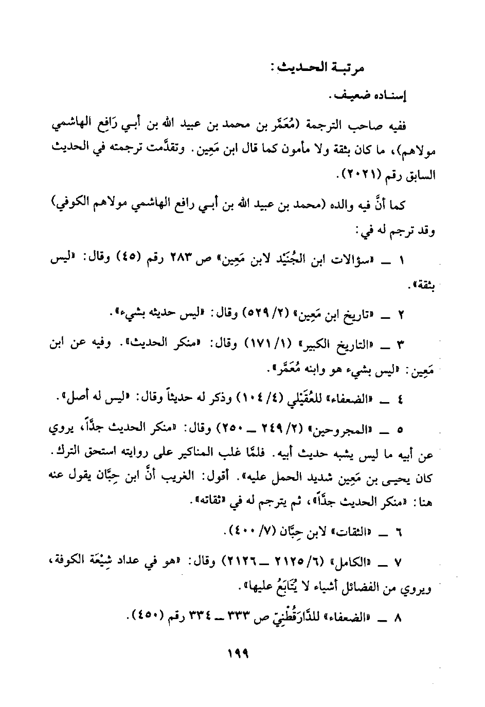 ٨ - "الضعفاء" للدَّارَقُطْنِيّ ص ٣٣٣ - ٣٣٤ رقم (٤٥٠).