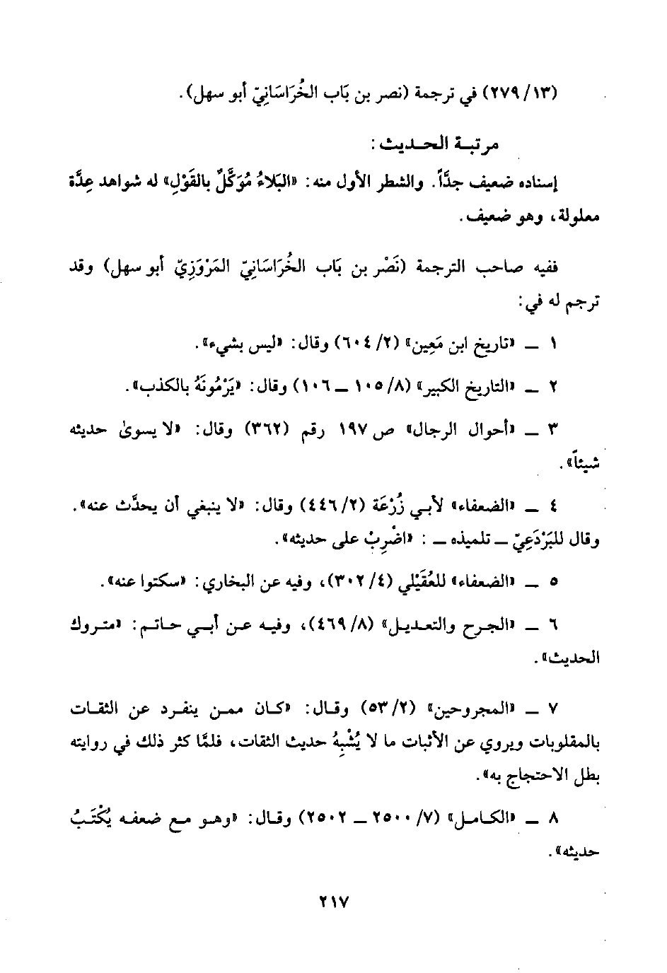 (١٣/ ٢٧٩) في ترجمة (نصر بن باب الخُرَاسَانِيّ أبو سهل).