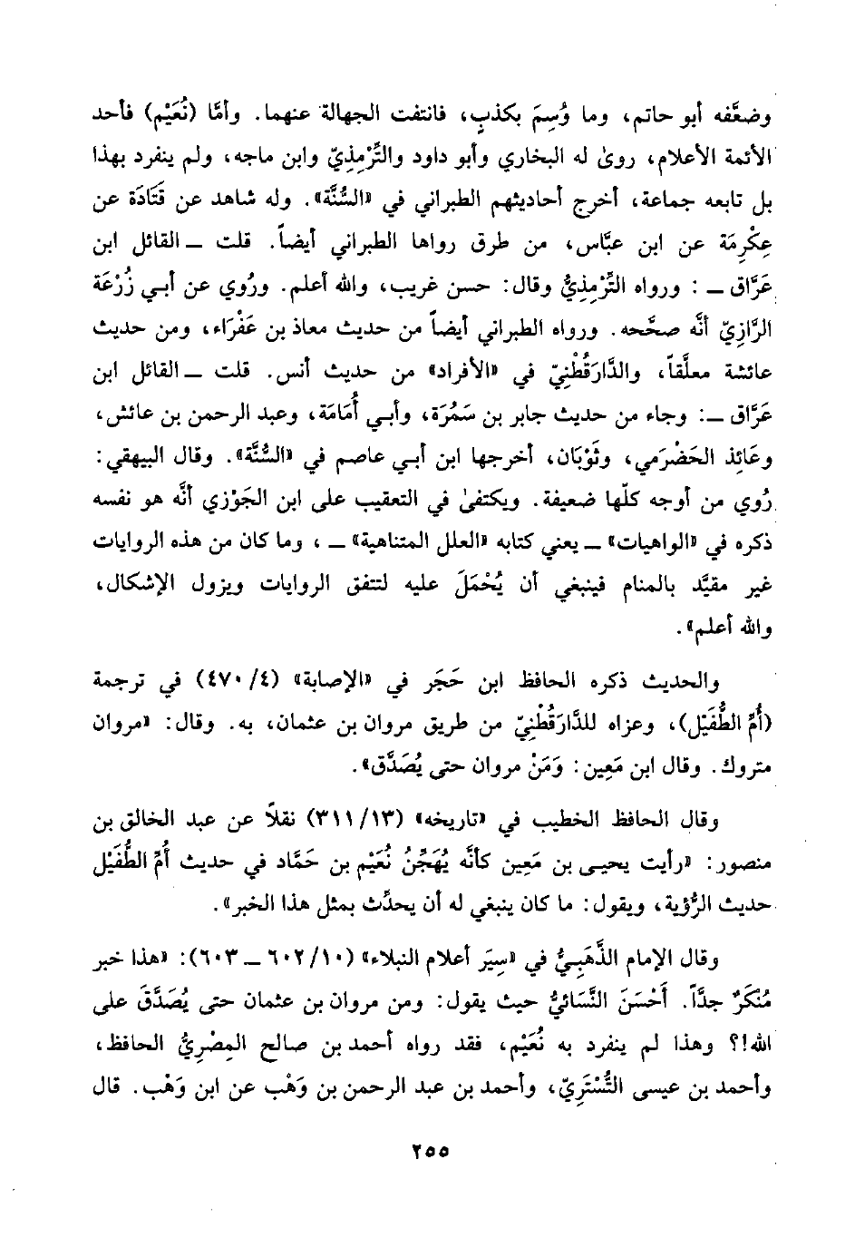 وقال الحافظ الخطيب في "تاريخه" (١٣/ ٣١١) نقلًا عن عبد الخالق بن منصور: "رأيت يحيى بن مَعِين كأنه يُهَجِّنُ نُعَيْم بن حَمَّاد في حديث أُمَّ الطُّفَيْل حديث الرُّؤية، ويقول: ما كان ينبغي له أن يحدِّث بمثل هذا الخبر".
