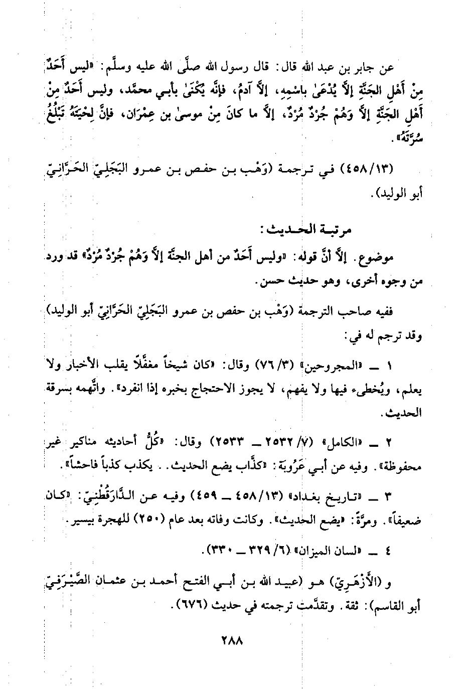(١٣/ ٤٥٨) في ترجمة (وَهْب بن حفص بن عمرو البَجَلِيّ الحَرَّانِيّ أبو الوليد).