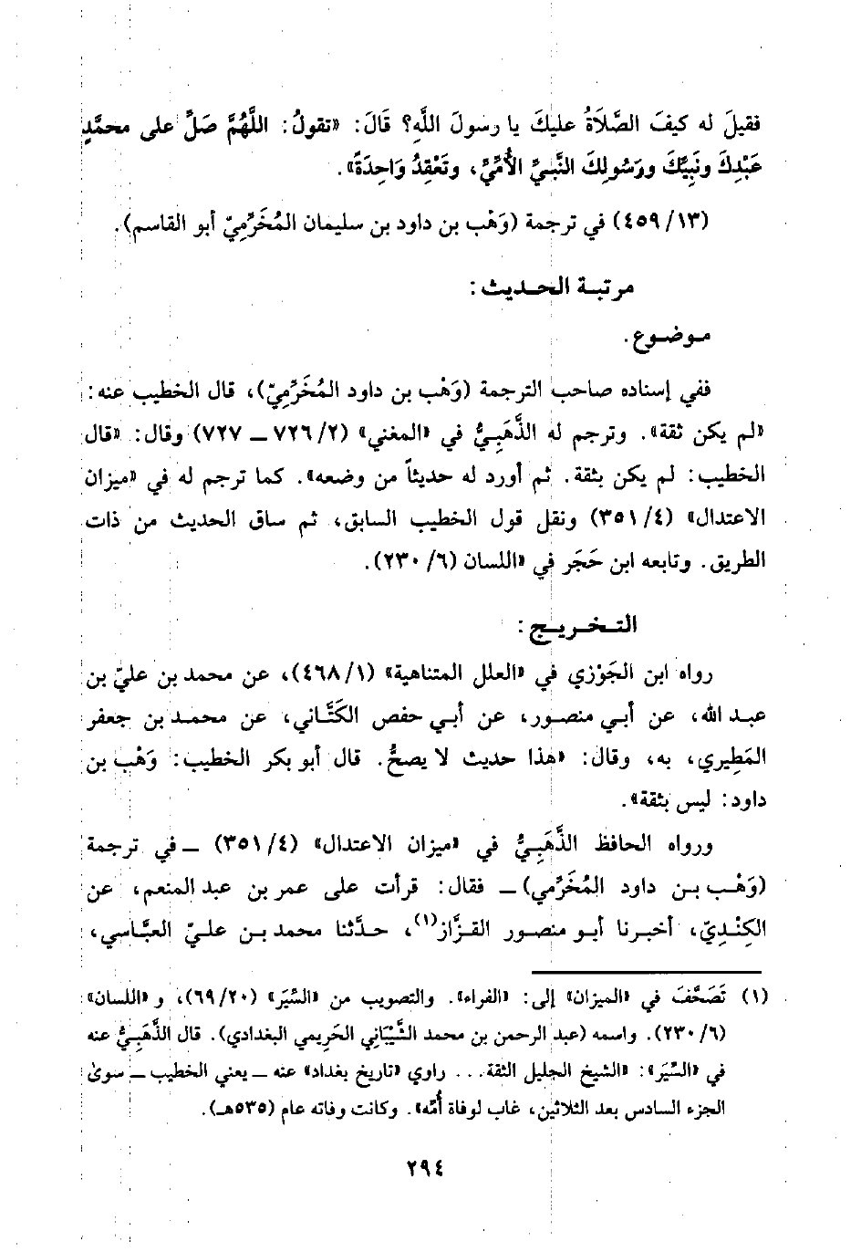 (¬١) تَصَحَّفَ في "الميزان" إلى: "الفراء". والتصويب من "السِّيَر" (٢٠/ ٦٩)، و"اللسان" (٦/ ٢٣٠). واسمه (عبد الرحمن بن محمد الشَّيْبَانِي الحَرِيمي البغدادي). قال الذَّهَبِيُّ عنه في "السِّيَر": "الشيخ الجليل الثقة. . . راوي "تاريخ بغداد" عنه -يعني الخطيب- سوى الجزء السادس بعد الثلاثين، غاب لوفاة أُمِّه". وكانت وفاته عام (٥٣٥ هـ).