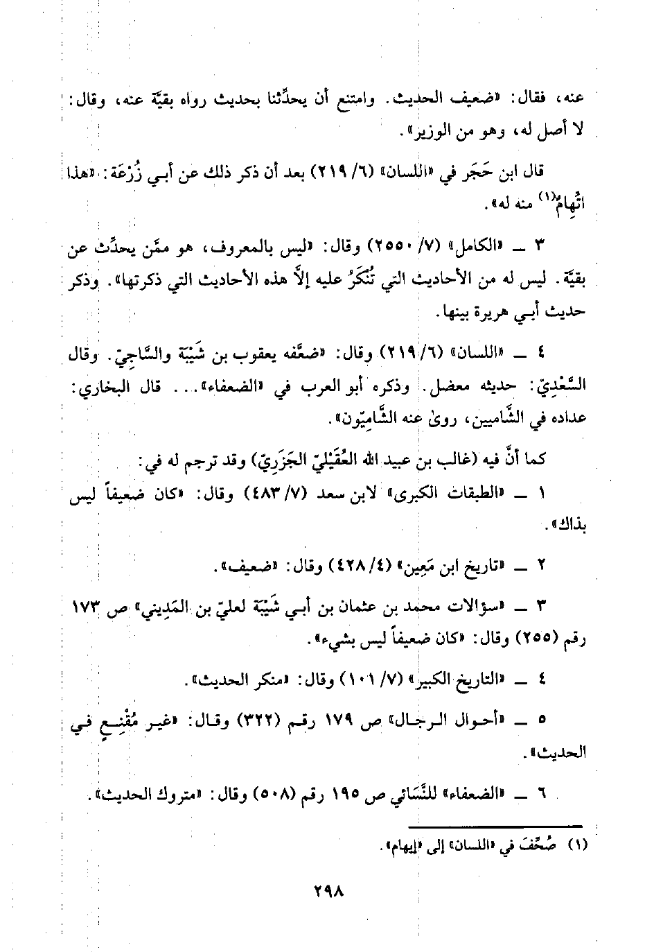 ٤ - "اللسان" (٦/ ٢١٩) وقال: "ضعَّفه يعقوب بن شَيْبَة والسَّاجِيّ. وقال السَّعْدِيّ: حديثه معضل. وذكره أبو العرب في "الضعفاء". . . . قال البخاري: عداده في الشَّاميين، روى عنه الشَّامِيّون".