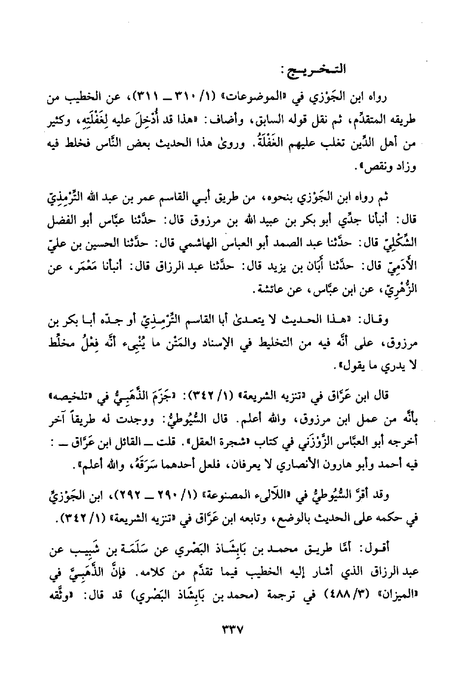 أقول: أمَّا طريق محمد بن بَابِشَاذ البَصْرِيّ عن سَلَمَة بن شَبِيب عن عبد الرزاق الذي أشار إليه الخطيب فيما تقدَّم من كلامه. فإنَّ الذَّهَبِيَّ في "الميزان" (٣/ ٤٨٨) في ترجمة (محمد بن بَابِشَاذ البَصْرِيّ) قد قال: "وثَّقه