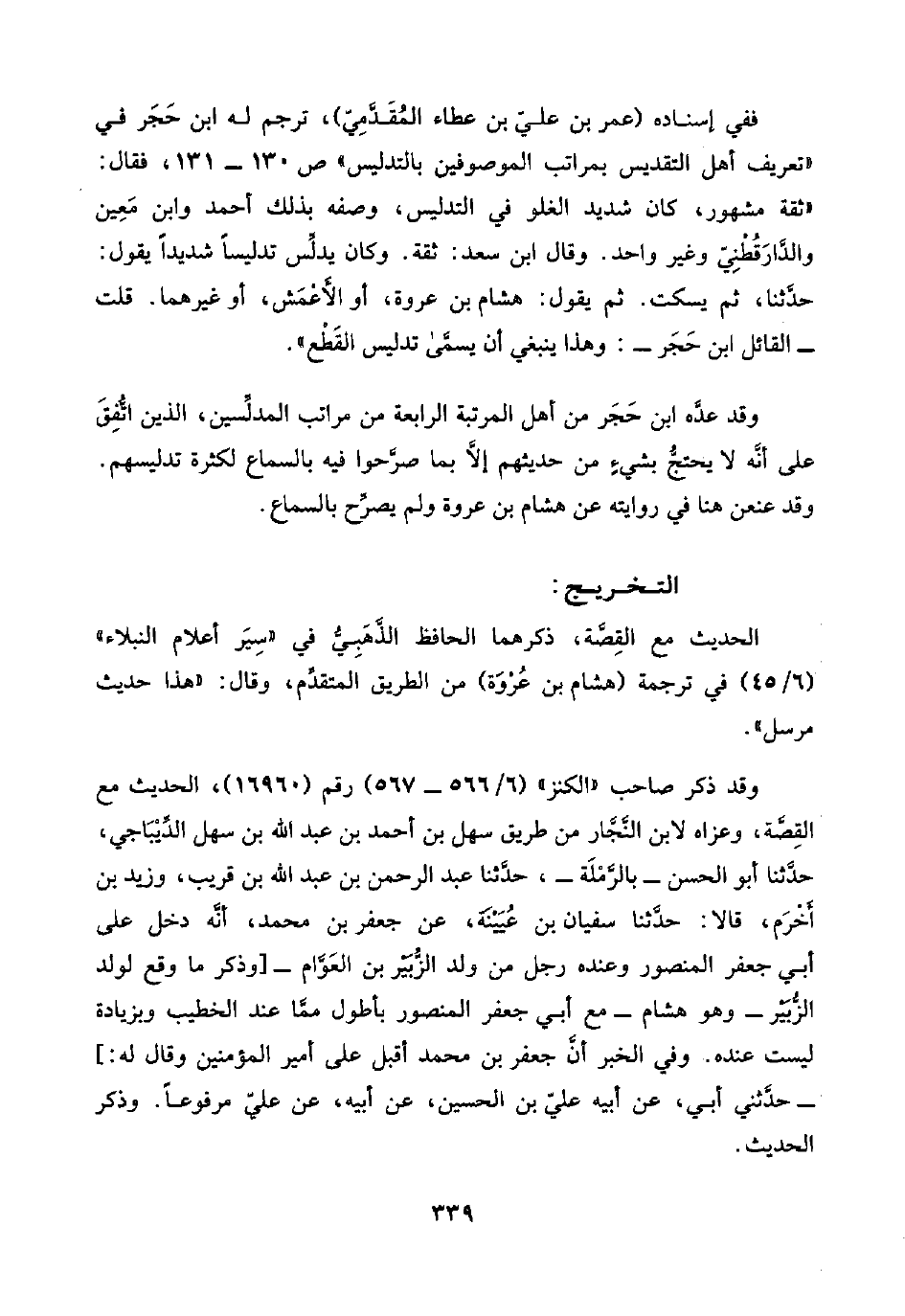 وقد عدَّه ابن حَجَر من أهل المرتبة الرابعة من مراتب المدلِّسين، الذين اتُّفِقَ على أنَّه لا يحتجُّ بشيءٍ من حديثهم إلَّا بما صرَّحوا فيه بالسماع لكثرة تدليسهم. وقد عنعن هنا في روايته عن هشام بن عروة ولم يصرِّح بالسماع.