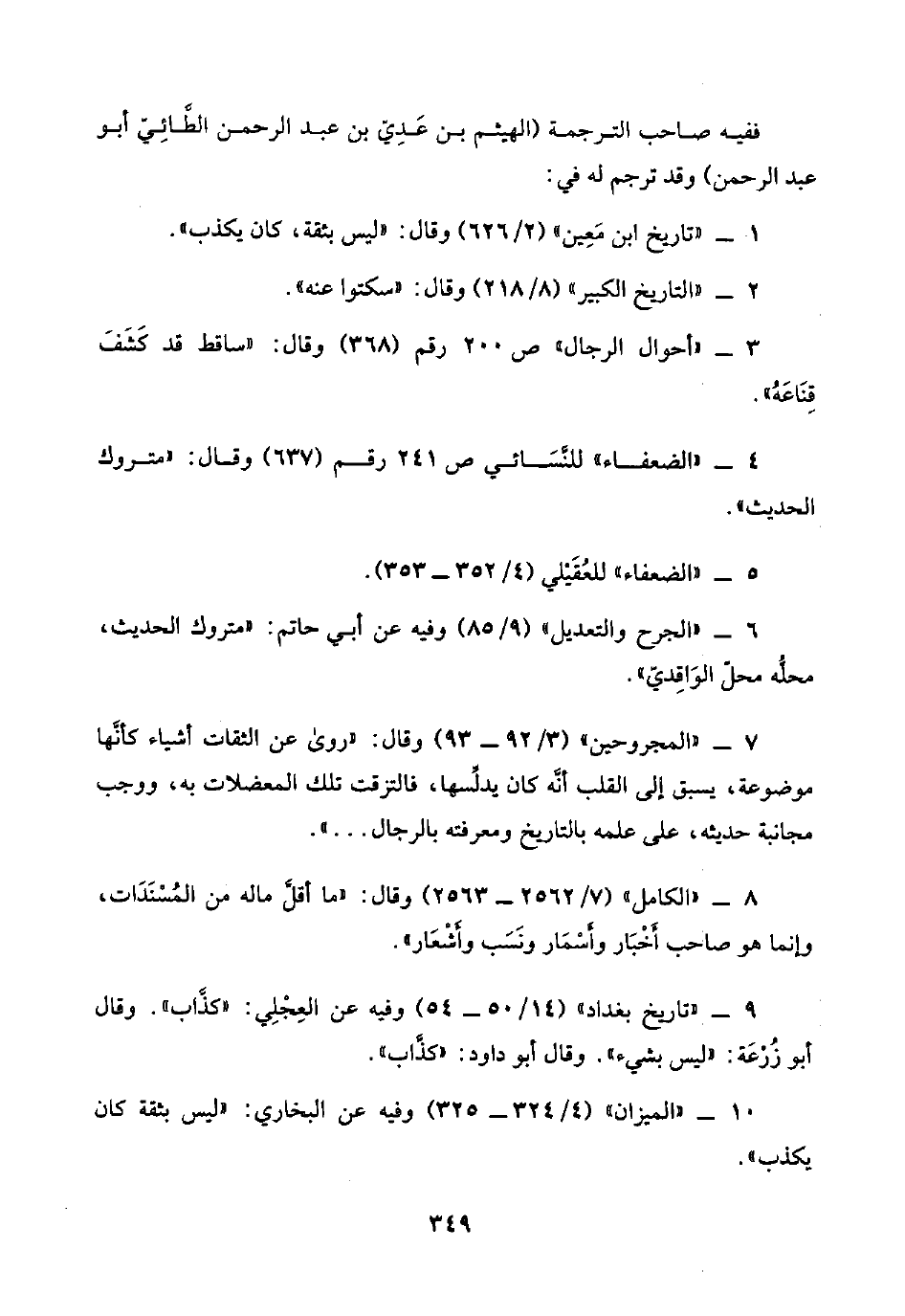ففيه صاحب الترجمة (الهيثم بن عَدِيّ بن عبد الرحمن الطَّائِيّ أبو عبد الرحمن) وقد ترجم له في: