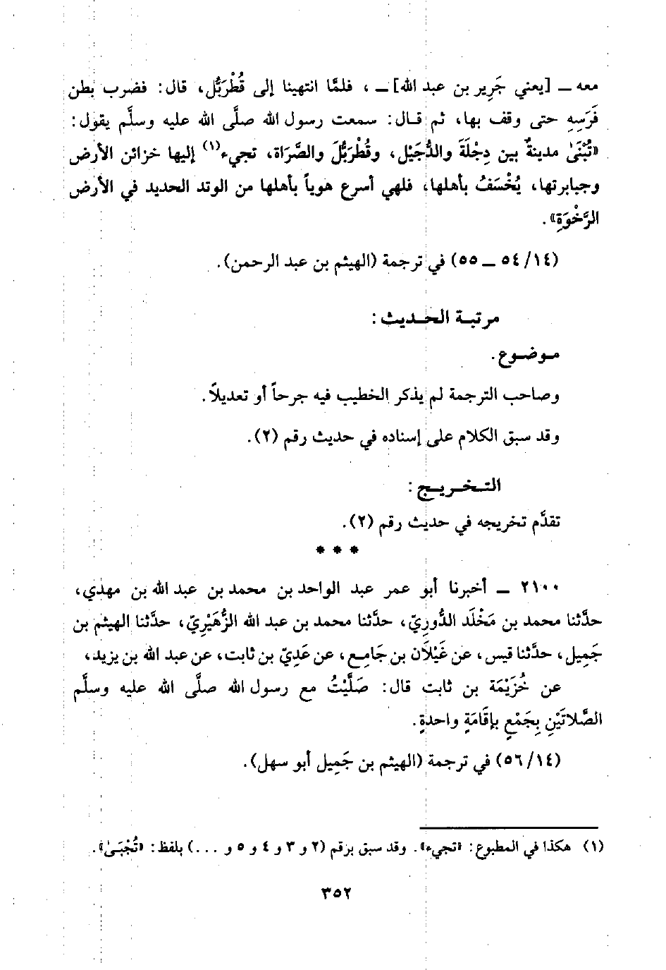 (١٤/ ٥٦) في ترجمة (الهيثم بن جَمِيل أبو سهل).