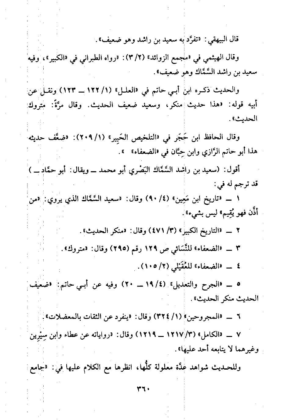 ١ - "تاريخ ابن مَعِين" (٩٠/ ٤) وقال: "سعيد السَّمَّاك الذي يروي: "من أذَّن فهو يُقِيم" ليس بشيء".