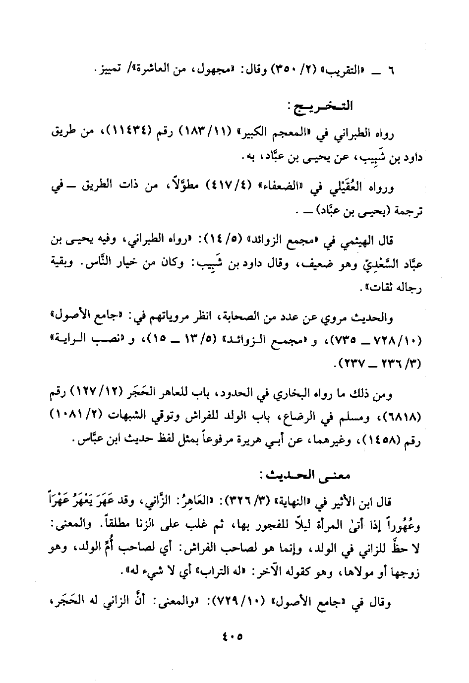 ومن ذلك ما رواه البُخَاري في الحدود، باب للعاهر الحَجَر (١٢/ ١٢٧) رقم (٦٨١٨)، ومسلم في الرضاع، باب الولد للفراش وتوقي الشبهات (٢/ ١٠٨١) رقم (١٤٥٨)، وغيرهما، عن أبي هريرة مرفوعًا بمثل لفظ حديث ابن عبَّاس.