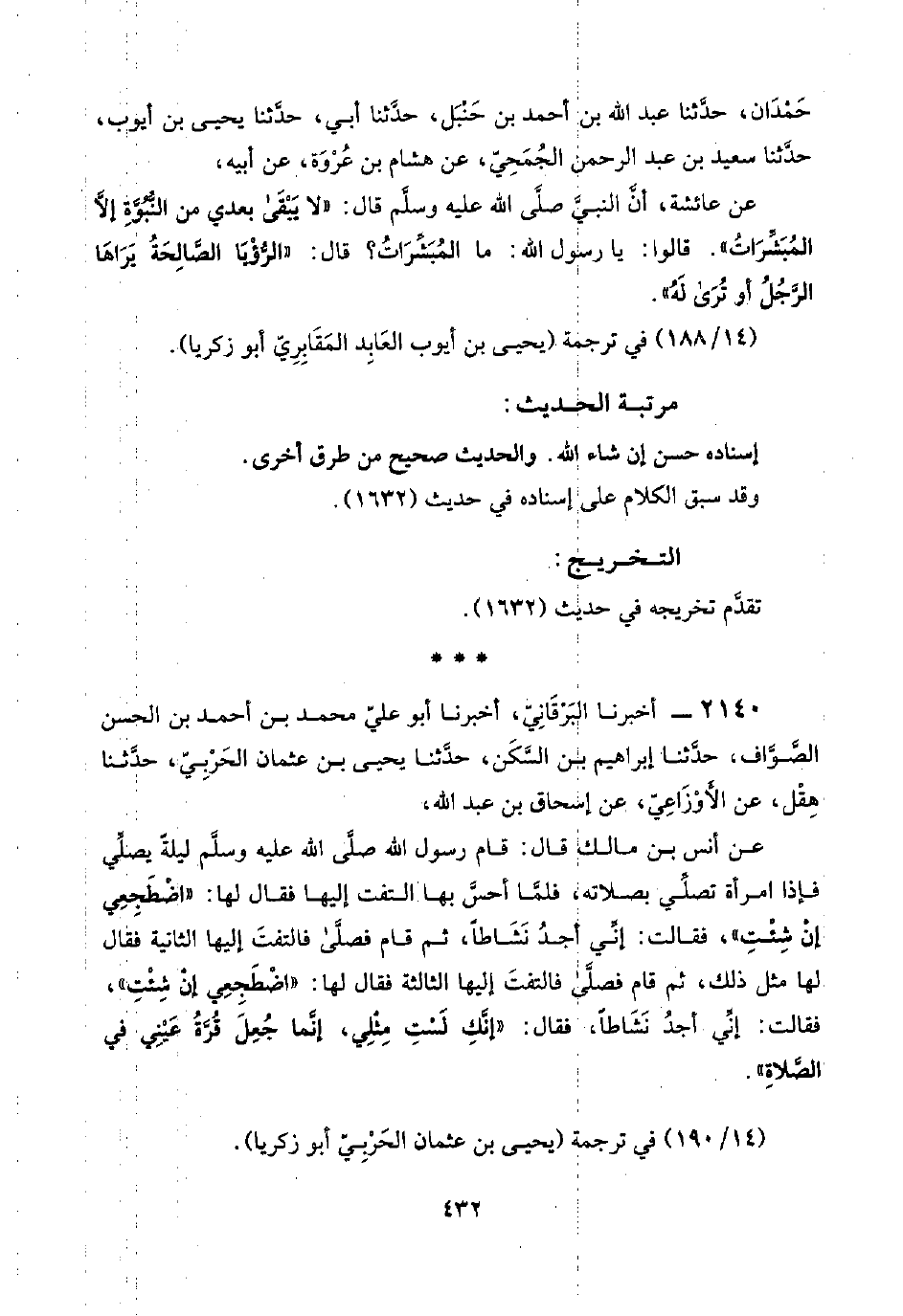 ٢١٤٠ - أخبرنا البَرْقَانِيّ، أخبرنا أبو عليّ محمد بن أحمد بن الحسن الصَّوَّاف، حدَّثنا إبراهيم بن السَّكَن، حدَّثنا يحيى بن عثمان الحَرْبِيّ، حدَّثنا هِقْل، عن الأَوْزَاعِيّ، عن إسحاق بن عبد اللَّه،