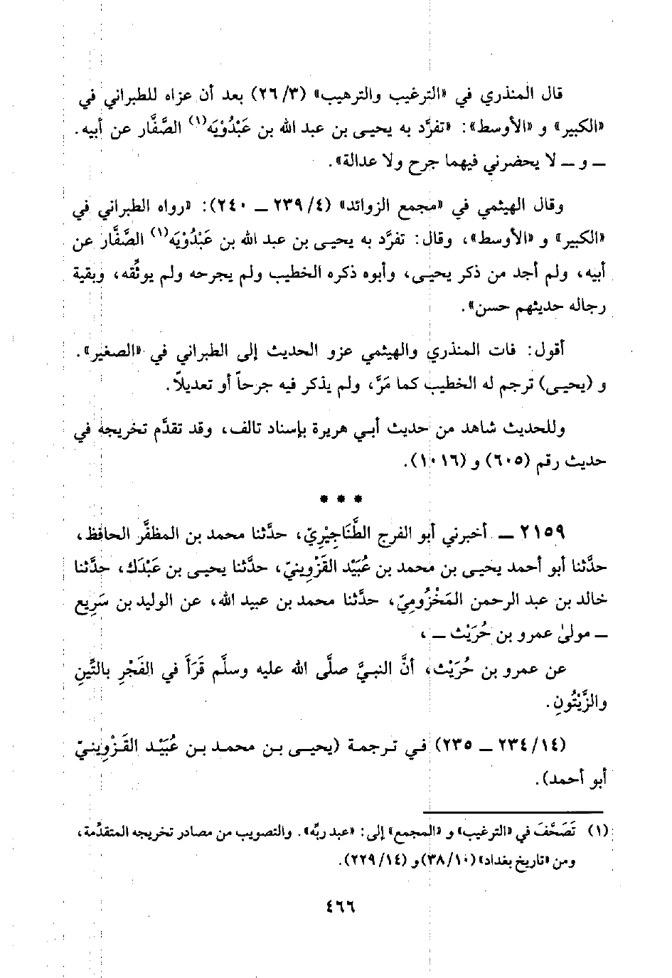 أقول: فات المنذري والهيثمي عزو الحديث إلى الطبراني في "الصغير". و (يحيى) ترجم له الخطيب كما مَرَّ، ولم يذكر فيه جرحًا أو تعديلًا.