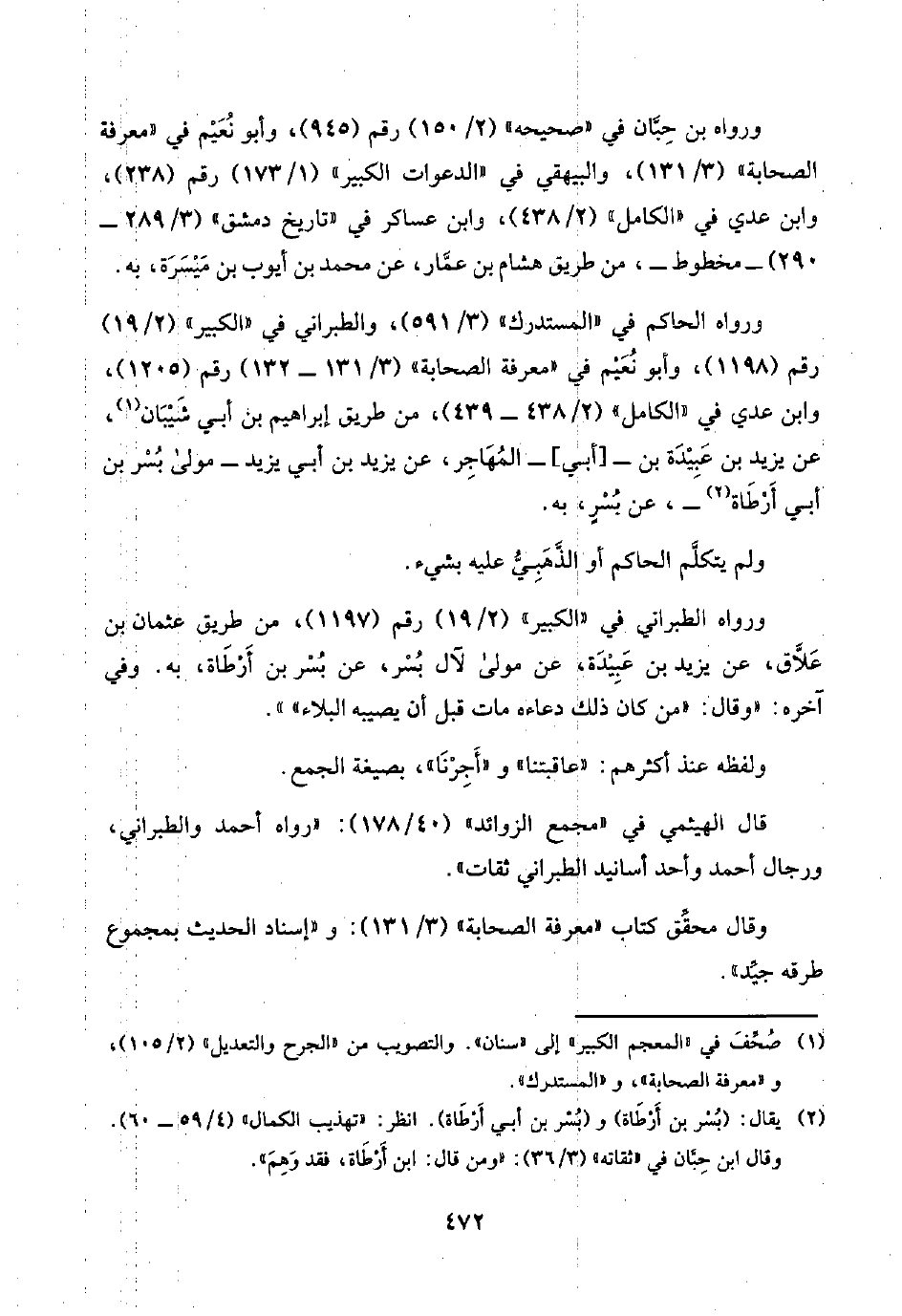 (¬٢) يقال: (بُسْر بن أَرْطَاة) و (بُسْر بن أبي أَرْطَاة). انظر: "تهذيب الكمال" (٤/ ٥٩ - ٦٠). وقال ابن حِبَّان في "ثقاته" (٣/ ٣٦): "ومن قال: ابن أَرْطَاة، فقد وَهِمَ".