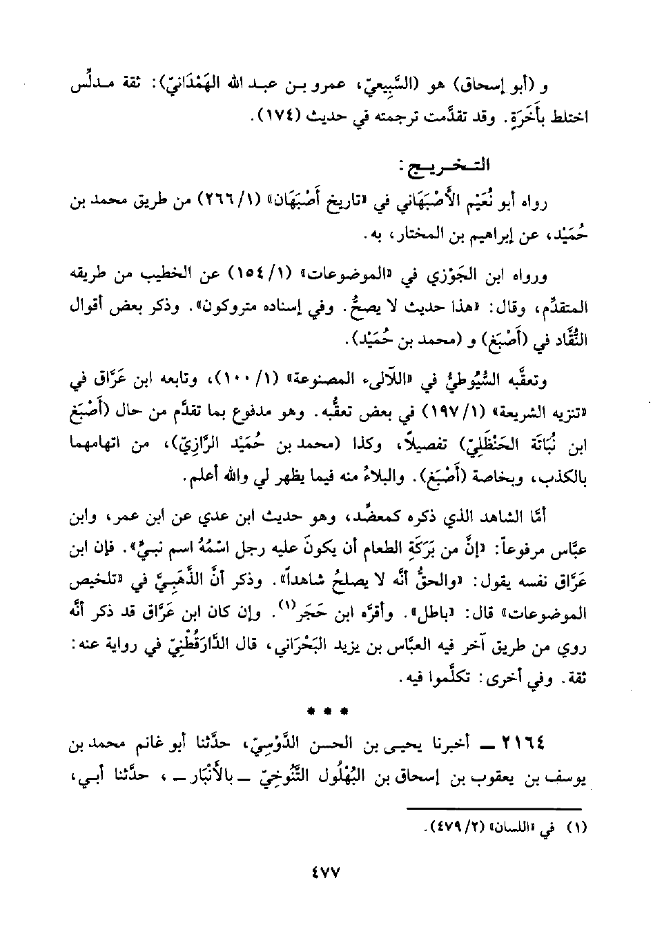 وتعقَّبه السُّيُوطيُّ في "اللآلئ المصنوعة" (١/ ١٠٠) وتابعه ابن عَرَّاق في "تنزيه الشريعة" (١/ ١٩٧) في بعض تعقُّبه. وهو مدفوع بما تقدَّم من حال (أَصْبَغ ابن نُبَاتَة الحَنْظَلِيّ) تفصيلًا، وكذا (محمد بن حُمَيْد الرَّازِيّ)، من اتهامهما بالكذب، وبخاصة (أَصْبَغ). والبلاءُ منه فيما يظهر لي واللَّه أعلم.